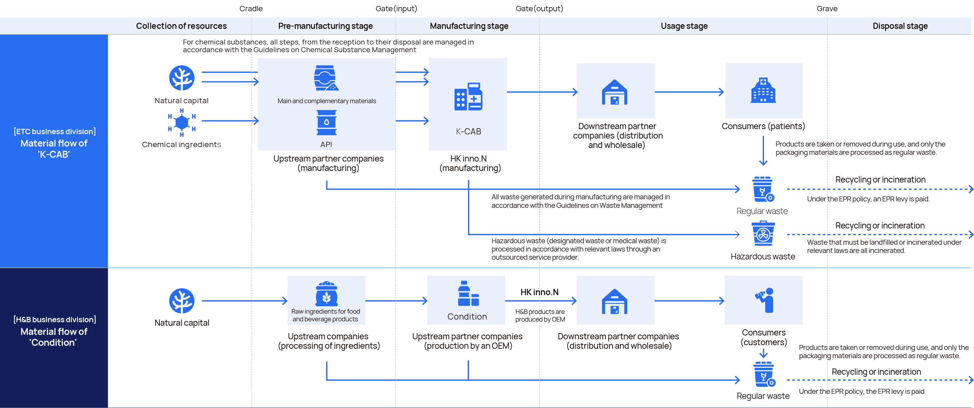 HK inno.N identifies sustainability issues based on material flow understanding. Based on this, we operate internal processes to manage the proper use and disposal of resources, such as monitoring recycling rate performance and waste management guidelines.