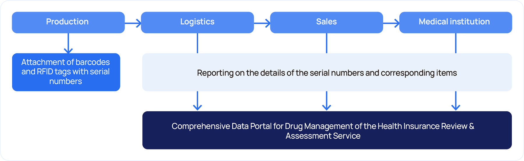 To prevent counterfeit drugs from entering the market and pose a threat to consumer health and trust in products, HK inno.N adopted a serial number system for drugs. HK inno.N assigns a product serial number to all ETC drugs and attaches barcodes and RFID tags, The barcodes and RFID tags are then used to transparently monitor how the drug is distributed throughout the market.