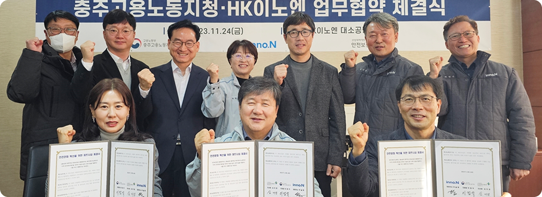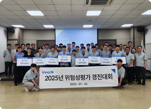 HK inno.N은 임직원의 안전문화 의식 제고를 통한 안전사고 발생 제로화를 위해 근로자 스스로 위험요인을 진단 및 개선하는 자기규율 예방체계를 정착할 수 있도록 위험성평가 중심의 활동을 수행합니다.