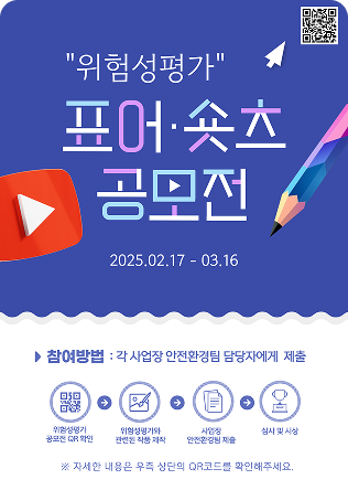 | 위험성평가 경진대회 | 정부의 산업안전 패러다임 전환에 따라 위험성평가 중심의 자기규율예방체계 확립을 위하여 사업장별 우수한 위험성평가 사례를 선정하여 시상 실시 |